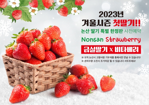 논산시가 17일 오후부터 고향사랑기부제 답례품몰에서 올해 ‘동절기 첫 딸기’ 사전 예약을 접수한다고 밝혔다.
