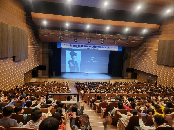 특강은 관내 초교생 700여명이 참여한 가운데 유튜브 ‘최현우’ 채널을 운영하고 마술쇼로 활동 중인 국민마술사 최현우 씨의 ‘편견을 넘어 꿈과 희망에 주문을 걸다’ 주제로 진행됐다.