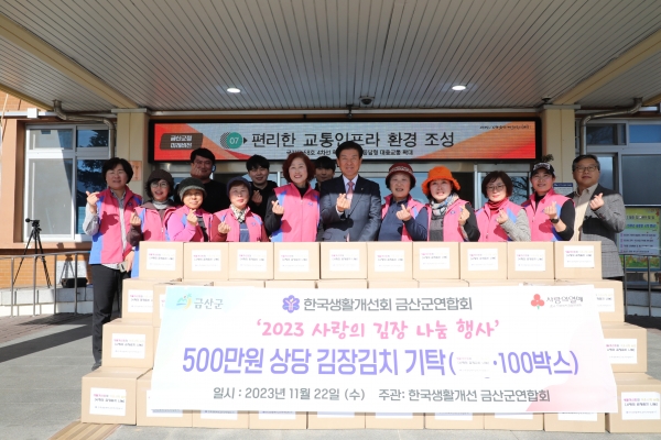 [충청뉴스큐] 한국생활개선금산군연합회는 지난 22일 김장 김치 700kg을 금산군에 기탁했다.