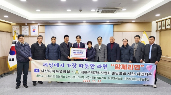 [충청뉴스큐] 충남 서산시는 27일 서산시아파트연합회와 주택관리사협회 서태안지부에서 지역의 어려운 이웃을 위해 450만원 상당의 후원 물품을 서산시에 기탁했다고 밝혔다.