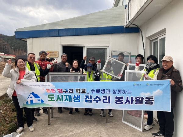 [충청뉴스큐] 청양군 도시 재생 주민 역량강화 사업인 ‘튼튼 집수리학교’ 수강생들로 구성된 집수리지원단이 지난 29일 주거환경이 열악한 주민들의 따뜻한 겨울나기를 위한 집수리 봉사활동을 전개했다.