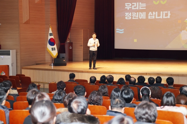 이날 강의에는 공무원 500여명이 참석해 순천만국제정원박람회 성공 사례와 지역 성장을 위한 괴산군이 나아가야 할 방향과 공직자의 역할에 대해 공유했다.