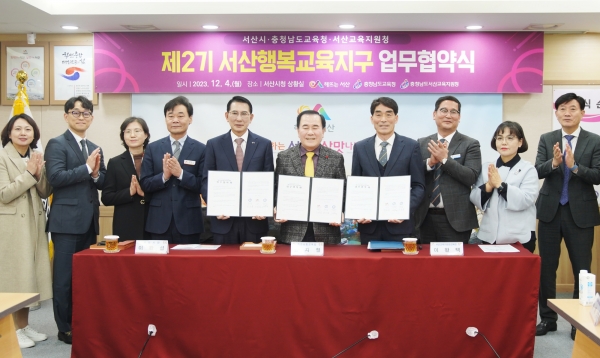 [충청뉴스큐] 충남 서산시는 충남교육청, 서산교육지원청과 4일 서산시청 상황실에서 ‘제2기 서산행복교육지구 협약’을 체결했다고 밝혔다.