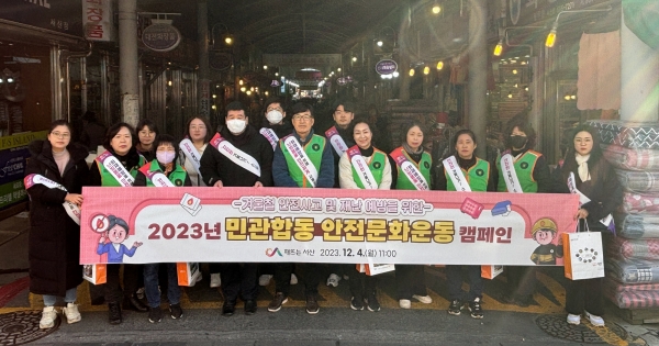 [충청뉴스큐] 충남 서산시는 지난 4일 서산동부전통시장과 서산공용버스터미널 일원에서 자율방재단과 함께 겨울철 안전사고와 재난예방을 위한 민관합동 안전 문화 운동 캠페인을 펼쳤다고 밝혔다.