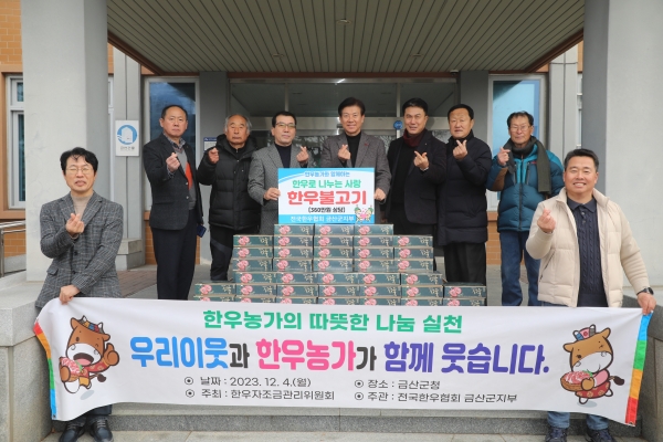 한우협회 금산군지부와 대한한돈협회 금산군지부는 지난 4일 금산군청을 방문해 360만원 상당 국거리 한우와 300만원 상당 한돈 햄 125세트를 각각 기탁했다.