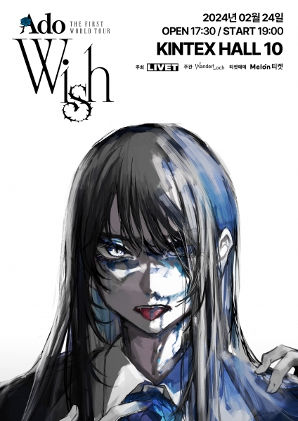 라이브 엔터테인먼트 브랜드 리벳에 따르면 아도는 내년 2월 24일 일산 킨텍스 10홀에서 ‘Ado THE FIRST WORLD TOUR ‘Wish’’를 개최하고 국내 팬들과 만남을 갖는다.