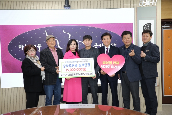 [충청뉴스큐] 금산군학교운영위원회와 금산군학부모회는 지난 8일 금산군청에서 장학기금 500만원을 금산교육사랑장학재단에 전달했다.