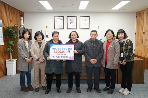[충청뉴스큐] 서천군 정신건강복지센터가 2023년 직업 재활프로그램 작품 전시 및 프리마켓 ‘미운 오리날다’를 통해 얻은 수익금 100만원을 사랑나누리에 기탁했다.