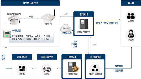 특히 화재 발생 시각, 주소, 위치, 시설관리 연락처 등의 정보가 자동으로 119에 신고·접수돼 소방서의 출동과 현장 도착 시간을 획기적으로 단축하며 화재에 초동 대응하는 골든타임을 확보해 인명 및 재산 피해를 최소화할 수 있다.