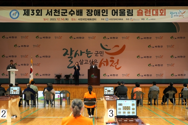 [충청뉴스큐] 서천군이 지난 14일 서천국민체육센터에서 열린 ‘제3회 서천군수배 장애인 어울림 슐런대회’를 성황리에 마무리했다.