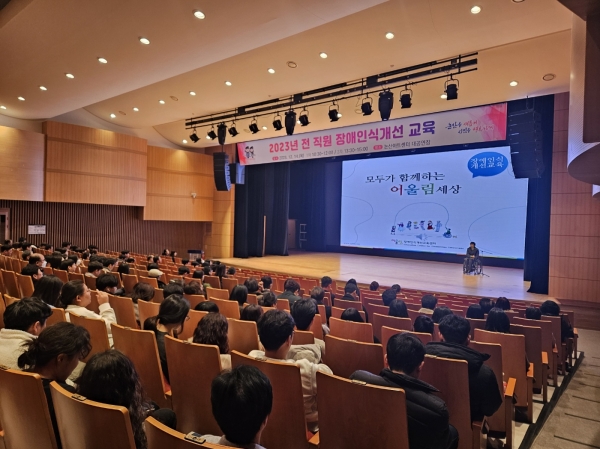 학국장애인식개선교육센터의 박도윤 강사가 나서 ‘모두가 함께하는 어울림 세상’이라는 주제로 교육을 진행했으며 장애인 존중에 관한 이야기를 사례 중심으로 소개해 직원들에게 큰 울림을 선사했다.