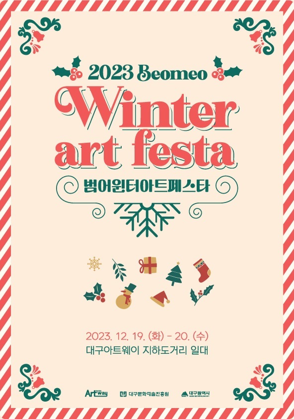 ‘2023 범어윈터아트페스타’는 대구아트웨이의 연말 정기프로그램으로 전시, 공연, 특강, 체험, 아트마켓 등 다양한 프로그램에 시민과 예술인이 직접 소통하며 문화예술을 즐길 수 있는 거리 축제다.