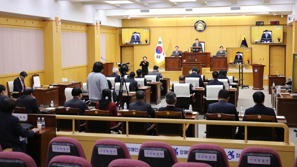 김맹호 의장은“내년도 예산안과 각종 안건심사에 힘써주신 동료 의원님들과 공직자 여러분께 감사드린다 이번 정례회에서 지적된 사항이나 제시된 의견들은 면밀히 검토 후 시정에 적극 반영해 달라”고 당부했다.
