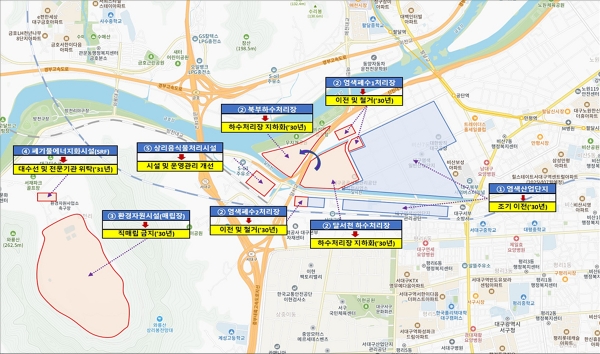대구광역시는 악취유발시설인 염색산업단지, 하·폐수처리장, 환경자원시설, 폐기물에너지화시설, 상리음식물처리시설에 대해 시설이전 및 개선 또는 지하화 등을 통해 2030년까지 악취 문제를 근원적으로 해결하고자 한다.