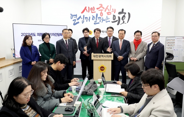 [충청뉴스큐] 대전광역시의회는 28일 기자실에서 2023년도 의정활동 결산과 2024년도 의정 방향 제시를 주제로 기자간담회를 개최하고 대시민 메시지를 전했다.