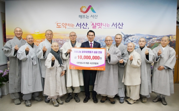 [충청뉴스큐] 충남 서산시는 대한불교조계종 서산연합회에서‘자비나눔 불우이웃돕기 성금 1천만원’을 서산시에 기탁했다고 밝혔다.