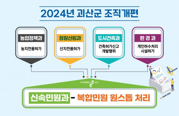 [충청뉴스큐] 충북 괴산군이 민선8기 본격적 도약을 위해 2024년 1월 1일자로 조직개편을 단행했다고 밝혔다.
