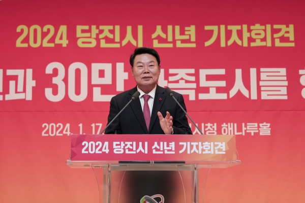 [충청뉴스큐] 오성환 당진시장이 2024년 새해를 맞아 17일 당진시청 해나루 홀에서 신년 기자 회견을 갖고 시정 운영 방향을 설명했다.