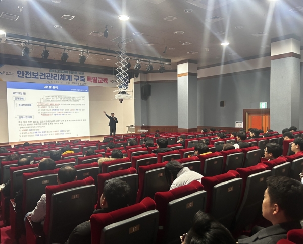이번 교육은 한국산업안전원 가성순 교육원장을 초빙해‘경영책임자 등의 안전 및 보건 확보 의무 조치’라는 주제로 진행됐으며 사업체, 실무담당자들의 전문성 및 직무역량을 제고시켜 중대산업재해를 예방하는데 중점을 두었다.