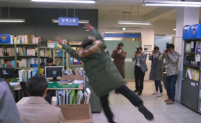 또한 카메라를 든 기자들의 셔터 세례에 맞서 몸을 날리는 서보걸의 모습도 포착돼 시선을 강탈한다. 카메라 셔터 공격으로부터 대호를 온몸으로 막아서며 ‘대호지킴이’로 변신한 보걸의 절박한 몸짓이 사진 속에 그대로 담겨 있어 폭소를 유발한다.