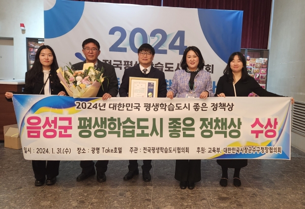 [충청뉴스큐] 음성군은 31일 전국평생학습도시협의회에서 주최하는 2024 대한민국 평생학습도시 좋은 정책상 공모에서 ‘좋은 정책상’ 수상의 쾌거를 이뤘다고 밝혔다.