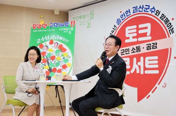 송인헌 군수는 올해부터 민선8기 군정목표인 ‘자연과 함께하는 청정괴산’ 실현을 위한 2024년도 군정운영방향을 주민들에게 직접 설명하고 군수와 지역 주민이 소통하는 토크콘서트를 도입해 현장감 있는 생생한 이야기를 들었다.