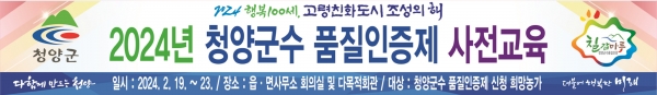 [충청뉴스큐] 청양군이 지역 특산품의 품질 향상과 소비자 신뢰 확보를 위해 올해에도 청양군수 품질 인증제를 추진한다고 7일 밝혔다.