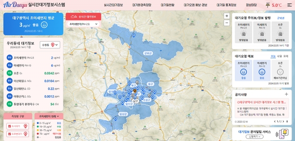 대구광역시가 2016년부터 운영해 온 ‘실시간 대기정보시스템 누리집’을 전면 개편하고 2월 14일부터 재가동한다.