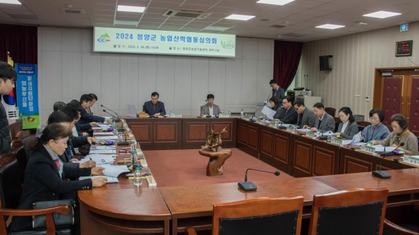 [충청뉴스큐] 청양군농업기술센터가 지난 20일 농업기술센터 세미나실에서 농업 관련 기관장, 농업인 단체장 등 위원 19명이 참석한 가운데 2024년 농업 산학협동심의회를 개최했다.