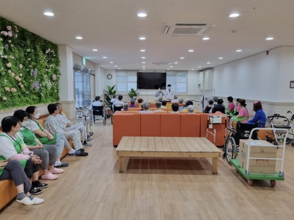 [충청뉴스큐] 충북 영동군 구강보건센터는 지난 22일 영동군립노인전문병원 입원환자 및 간병사를 대상으로 노년기 구강보건교육을 진행했다.