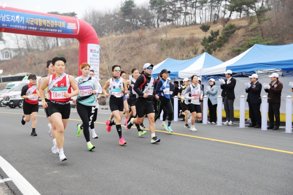 충남 15개 시군의 초중고 학생, 일반부 선수 및 임원 등 700여명이 참가한 이번 대회는 서산종합운동장 서문에서 출발해 해미 송덕암을 거쳐 서산나라사랑공원에 도착하는 38.9㎞코스를 각 부별로 12구간으로 나눠 계주로 진행됐다.