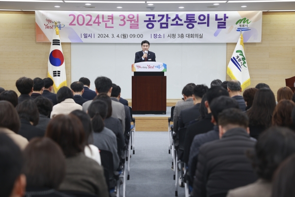 [충청뉴스큐] 이응우 계룡시장은 4일 시청 대회의실에서 간부공원을 비롯한 시 공직자 200여명이 참석한 가운데 ‘2024년 1분기 공감소통의 날’ 행사를 가졌다.