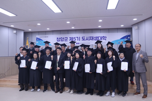 [충청뉴스큐] 청양군이 지난 14일 정산면 행복마을터에서 5기 도시재생대학 과정을 마치고 수료생 20여명을 배출했다.