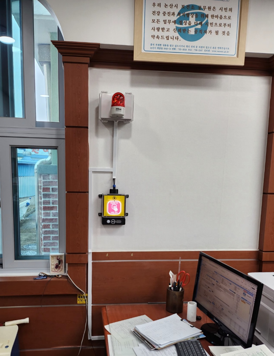 위기 상황 발생 시 근무자가 비상벨을 누르면 논산경찰서 112상황실로 자동 신고되어 경찰이 즉각 출동한다.