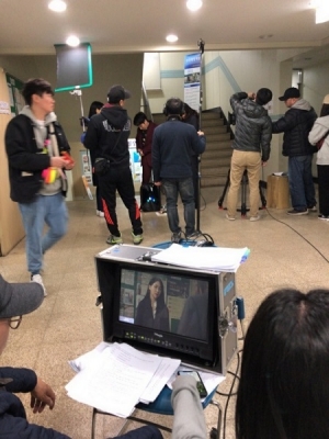 새빈은 지난 7일 주연으로 출연, 한창 촬영 중인 웹드라마 '돈이면 다냐' 촬영장에서 강행군 중 휴식시간이 인증샷을 찍어 공개했다.