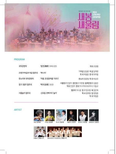 이번 공연은‘새봄 새울림’의 주제로 새롭게 시작하는 봄의 에너지와 함께 군민에게 문화향유 기회를 제공하고 품격있고 수준 높은 국악 공연을 선보이며 국악의 본향 영동군의 이미지를 제공하고자 기획됐다.