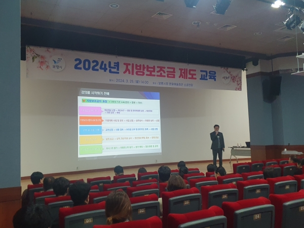 [충청뉴스큐] 보령시는 지난 25일 보령문화예술회관 소공연장에서 지방보조사업 담당 공무원 및 민간 보조사업자 140여명이 참석한 가운데 지방보조금 제도 교육을 실시했다.