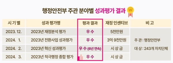 이에 앞서 2월에는‘2023년 지방자치단체 혁신평가’에서 6년 연속 우수기관으로 선정되는 영예를 안았다.