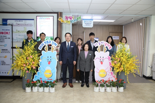 민원실 입구에는 군 꽃이자 봄의 전령사인 활짝 핀 개나리로 장식한 포토존을 만들어 방문객들이 편안하게 사진을 찍을 수 있도록 했다.
