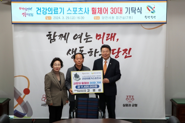 [충청뉴스큐] 당진 관내 위치한 건강의료기 스포츠사는 29일 거동이 불편한 장애인과 노약자 등 취약계층을 위해 휠체어 30대를 기탁했다.