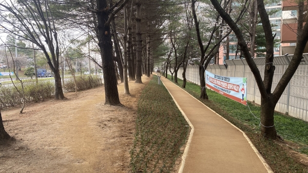 해당 사업은 최근 건강 걷기에 관한 관심과 맨발로 길을 이용하는 시민들이 지속적으로 증가함에 따라 강산동 완충녹지 내 황토길을 조성해 시민 건강증진 및 자연과 함께하는 힐링 공간을 제공하고자 마련됐다.