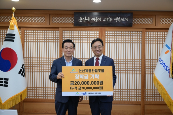 논산계룡산림조합조합은 2013년에 2천만원, 2021년부터 2023년까지 매년 1천만원씩 기탁하고 올해 2천만원을 기탁해 지금까지 총 7천만원을 논산시장학회에 기탁했다.