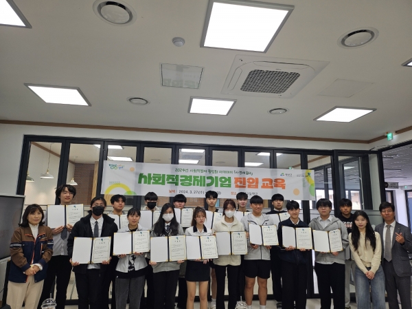 주요 교육 내용으로는 ▲사회적경제 기업가 정신 및 창업 설계 ▲사회적경제기업 창업 사례 ▲예비 창업자가 알아야 할 세무·법률 정보 ▲온라인 홍보 및 마케팅 ▲사업계획서 작성법 등 예비 창업자를 꿈꾸는 학생들에게 유익한 내용들로 구성됐다.