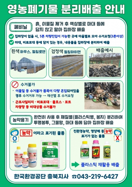 영농과정 후 배출되는 차광막, 부직포 등은 직접 옥천군 폐기물종합처리장으로 운반해 배출해야 하며 배출 비용은 없다.