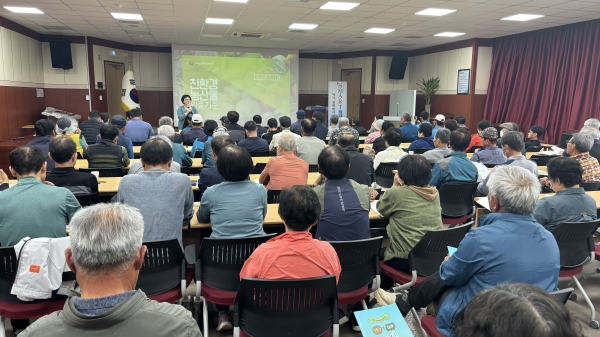 이날 교육은 친환경 인증 농업인 및 관심군민 120명이 참석해 ‘친환경 농업의 이해 및 세부실천 요령, 영농기록 방법, 수확 후 관리 방법 등’에 대해 미래친환경인증센터 김하연 대표로부터 강의가 이루어졌다.