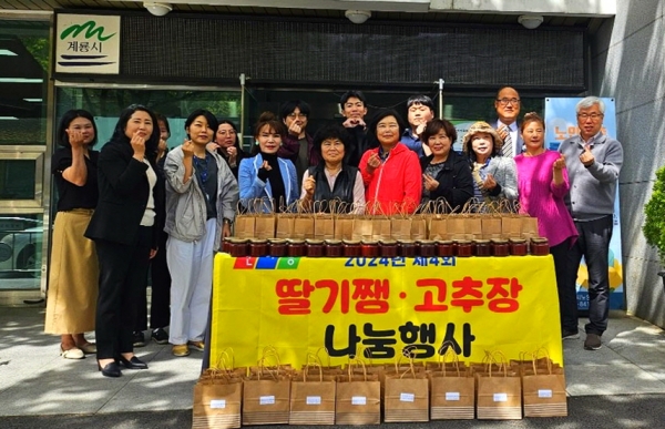 [충청뉴스큐] 계룡시는 한국여성농업인계룡시연합회(이하한여농)와 함께 관내 거주하는 저소득 또는 독거 어르신 70여분에게 지역에서 생산된 농산물을 이용해 회원들이 직접 만든 딸기잼과 고추장을 나누는 행사를 가졌다고 전했다.