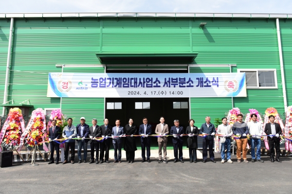 [충청뉴스큐] 서천군이 지난 17일 비인면 관리 354-12 일원에서 김기웅 군수를 비롯해 기관단체장, 농업인단체, 주민 등 50여명이 참석한 가운데 농업기계 임대사업 서부분소 개소식을 가졌다.