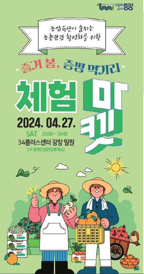 [충청뉴스큐] 충북 증평군이 오는 27일 34플러스센터 광장에서 ‘즐겨 봄, 증평 먹거리 체험마켓 행사’를 개최한다.