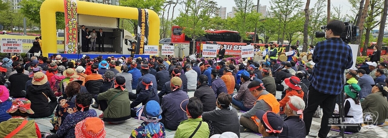 지난22일 충남도청 앞에서 당진시 석문면, 고대면, 송산면 주민 200여 명이 집회를 열고 충남도 김태흠 도지사의 스마트축산 복합단지 조성계획에 대한 강한 반대 의사를 분명히 밝혔다.
