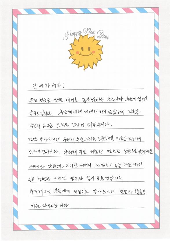 편지는“얼굴도 한번 제대로 못 뵈었지만 글로나마 후원자님께 감사드린다”로 시작한다.